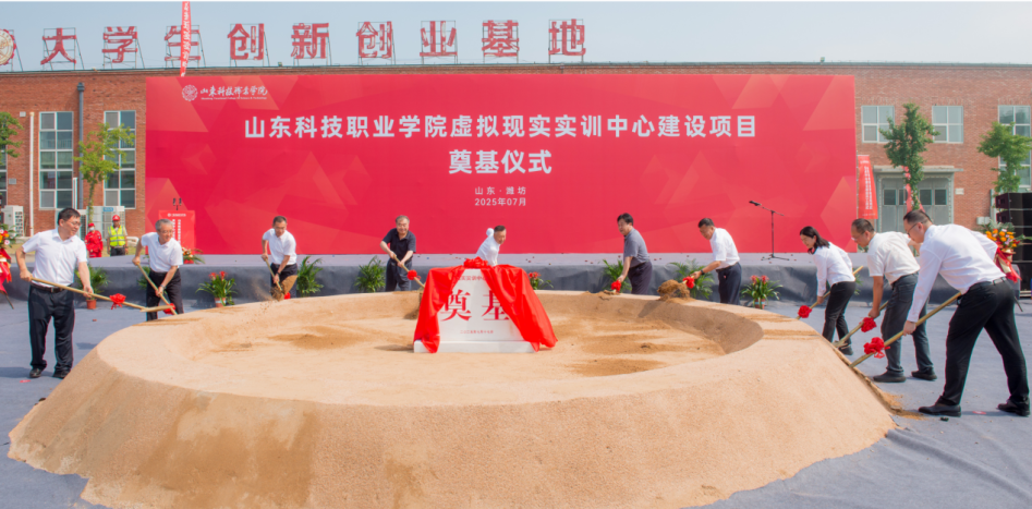 浮煙山麓,夏木蔥蘢。7月17日上午,山東科技職業學院虛擬現實實訓中心建設項目奠基儀式隆重舉行。學校黨委書記鄭德前,省工程咨詢院副院長何健,昌大建設集團總裁朱九洲,山東建筑大學設計集團有限公司董事長、總經理李端杰共同出席。校長劉福玉主持儀式,學校全體班子成員共同參加,校企代表齊聚,共啟職教新篇章。
