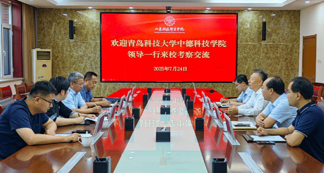 7月24日上午,青島科技大學中德科技學院院長岳學海、副院長郭建章一行4人來??疾旖涣?。學校黨委書記鄭德前會見來訪客人,并座談交流。智能制造系、機械工程系等相關部門人員參加座談。