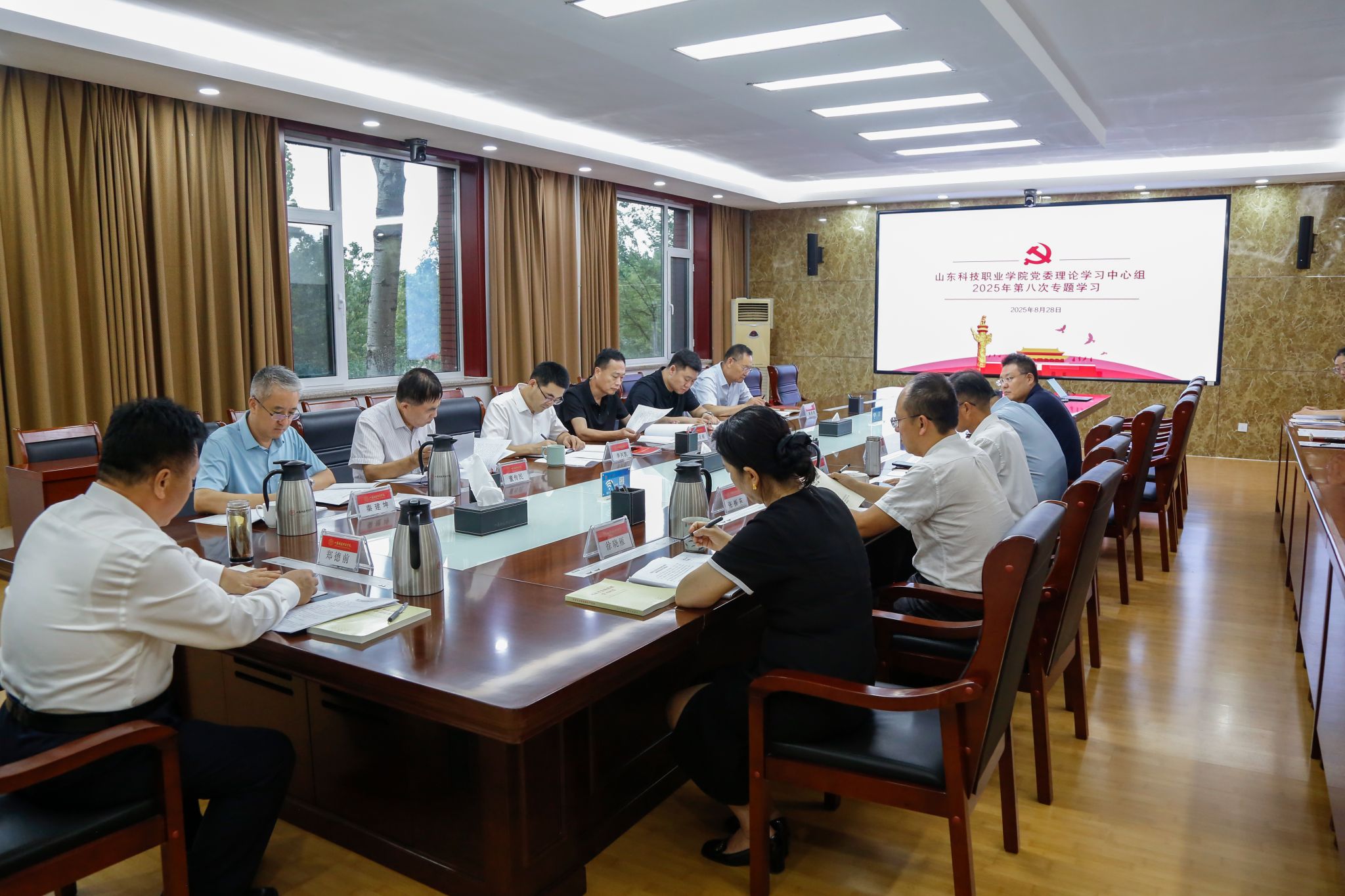 8月28日下午,學校黨委理論學習中心組在辦公樓第一會議室開展2025年第八次集體學習。學校黨委書記鄭德前主持學習并講話,中心組成員出席會議并分別領學相關篇目。相關職能部門負責人參加集體學習。
