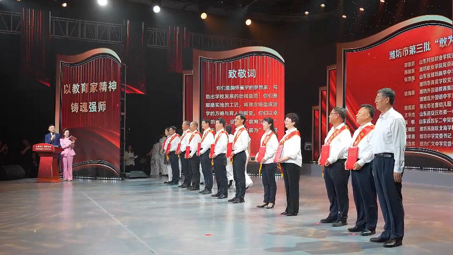 9月10日,濰坊市委、市政府舉行全市慶祝第41個教師節大會。學校黨委書記鄭德前參加大會并榮獲濰坊市“敢為善為十佳書記校長”稱號。