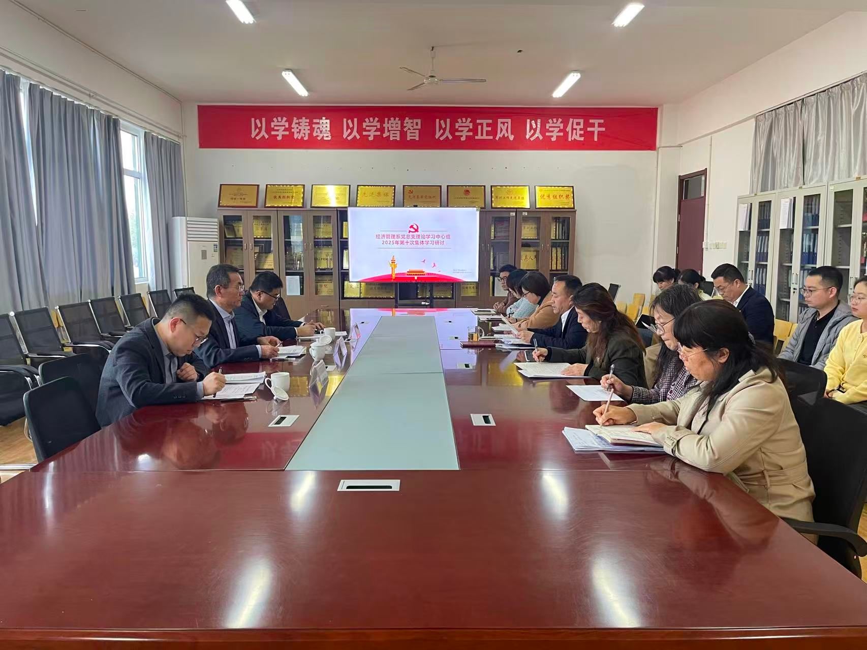 10月31日下午,學校黨委副書記、校長劉福玉到經濟管理系巡聽旁聽理論學習中心組(擴大)學習和黨政聯席會議并作點評講話。經濟管理系黨政班子成員、師生黨支部委員參加會議,議題有關人員列席會議。
