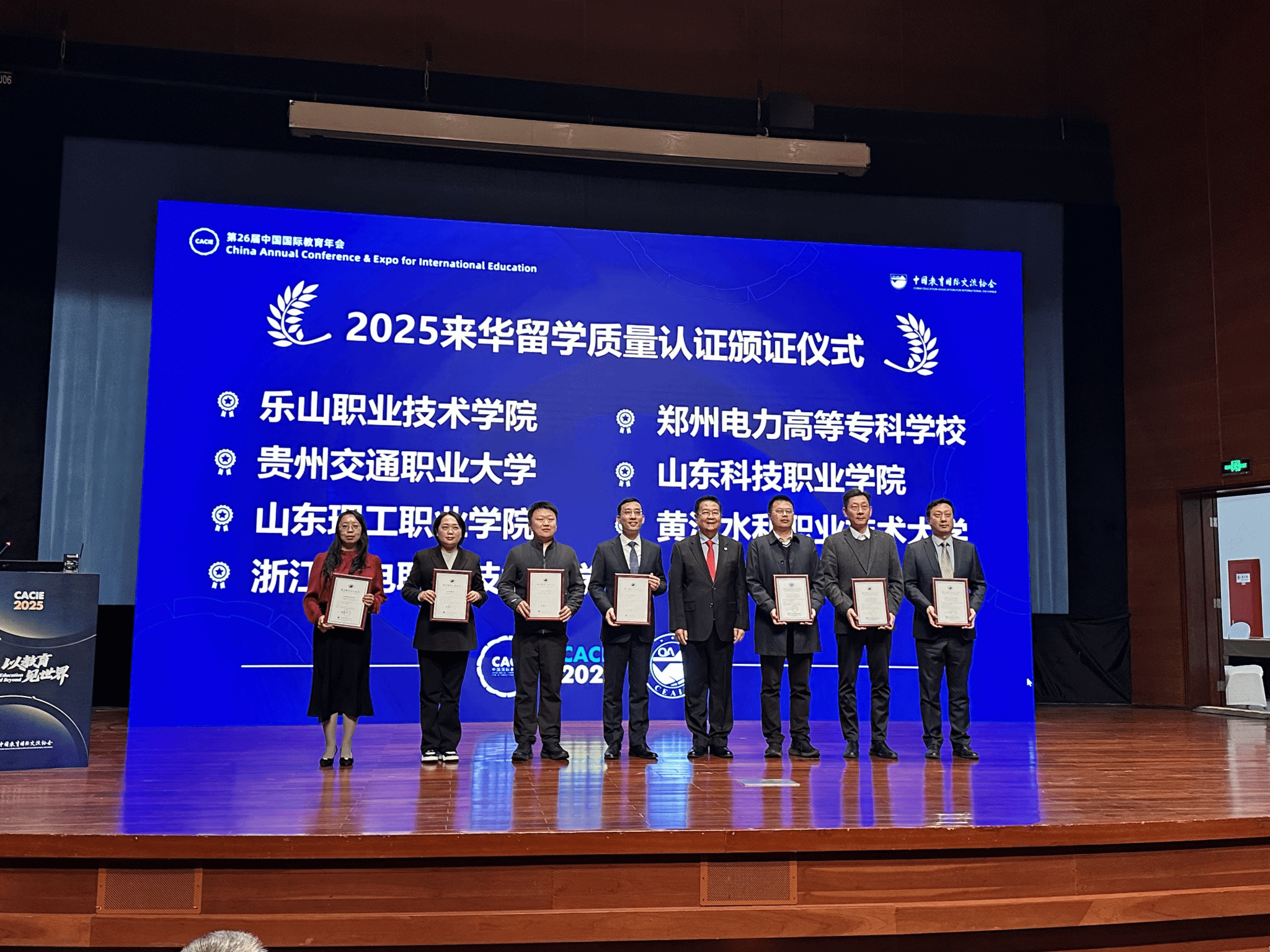 年會(huì)期間,2025年度來華留學(xué)生高等職業(yè)教育質(zhì)量認(rèn)證結(jié)果正式公布,學(xué)校憑借扎實(shí)的辦學(xué)基礎(chǔ)、鮮明的職教特色和完善的培養(yǎng)體系順利通過認(rèn)證,獲評C+等級,認(rèn)證有效期四年。