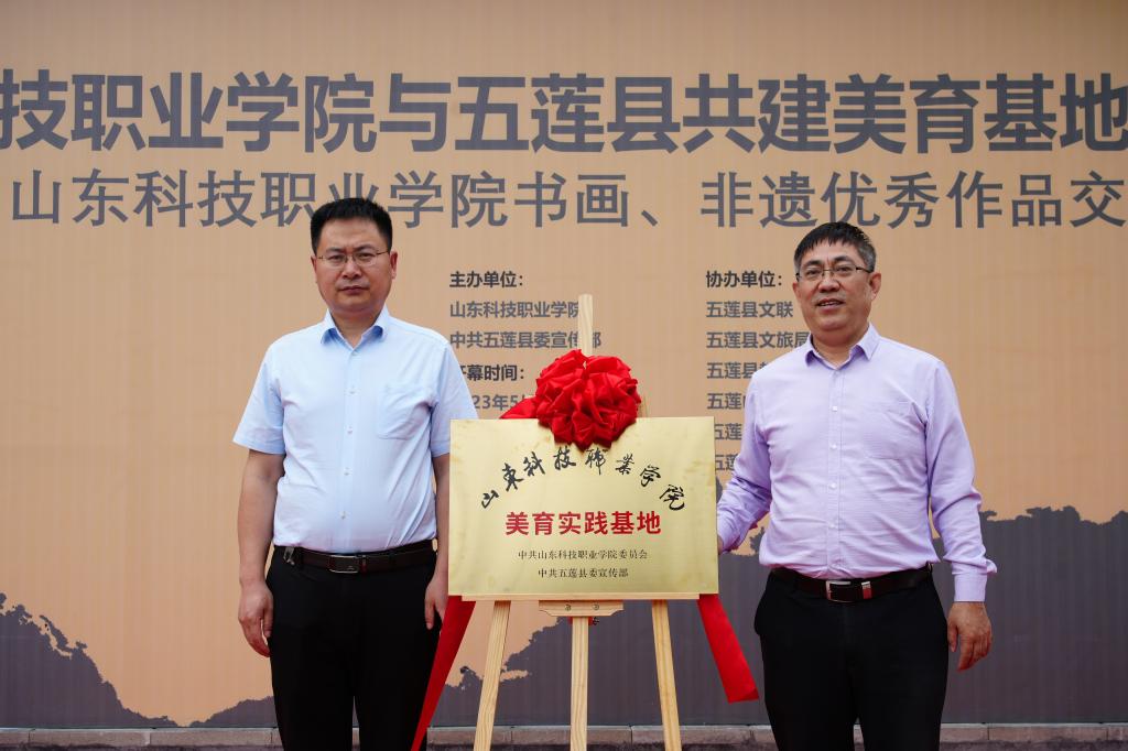 揭牌儀式上,李維江在致辭中指出,美育實踐基地成立,是建設(shè)富強(qiáng)、秀美、精致、活力的現(xiàn)代化五蓮新征程中的一次積極嘗試,將助力五蓮美育教育水平有效提升,有利于進(jìn)一步濃厚區(qū)域文化藝術(shù)氛圍,為五蓮再添一處厚重的文化印記。學(xué)院代表在致辭中介紹了學(xué)院基本情況,并表示,學(xué)院將發(fā)揮相關(guān)專業(yè)和美育學(xué)科辦學(xué)優(yōu)勢,深化校地雙方在學(xué)術(shù)交流、專業(yè)共建、實踐教學(xué)、展覽展示等方面合作,努力形成資源共享、優(yōu)勢互補(bǔ)、全面融合、共同發(fā)展的良好局面,以藝術(shù)賦能鄉(xiāng)村振興,為五蓮鄉(xiāng)村建設(shè)作出貢獻(xiàn)。揭牌儀式后,雙方共同觀看了書畫、非遺作品交流展,并舉行了美育實踐基地共建主題研討會。