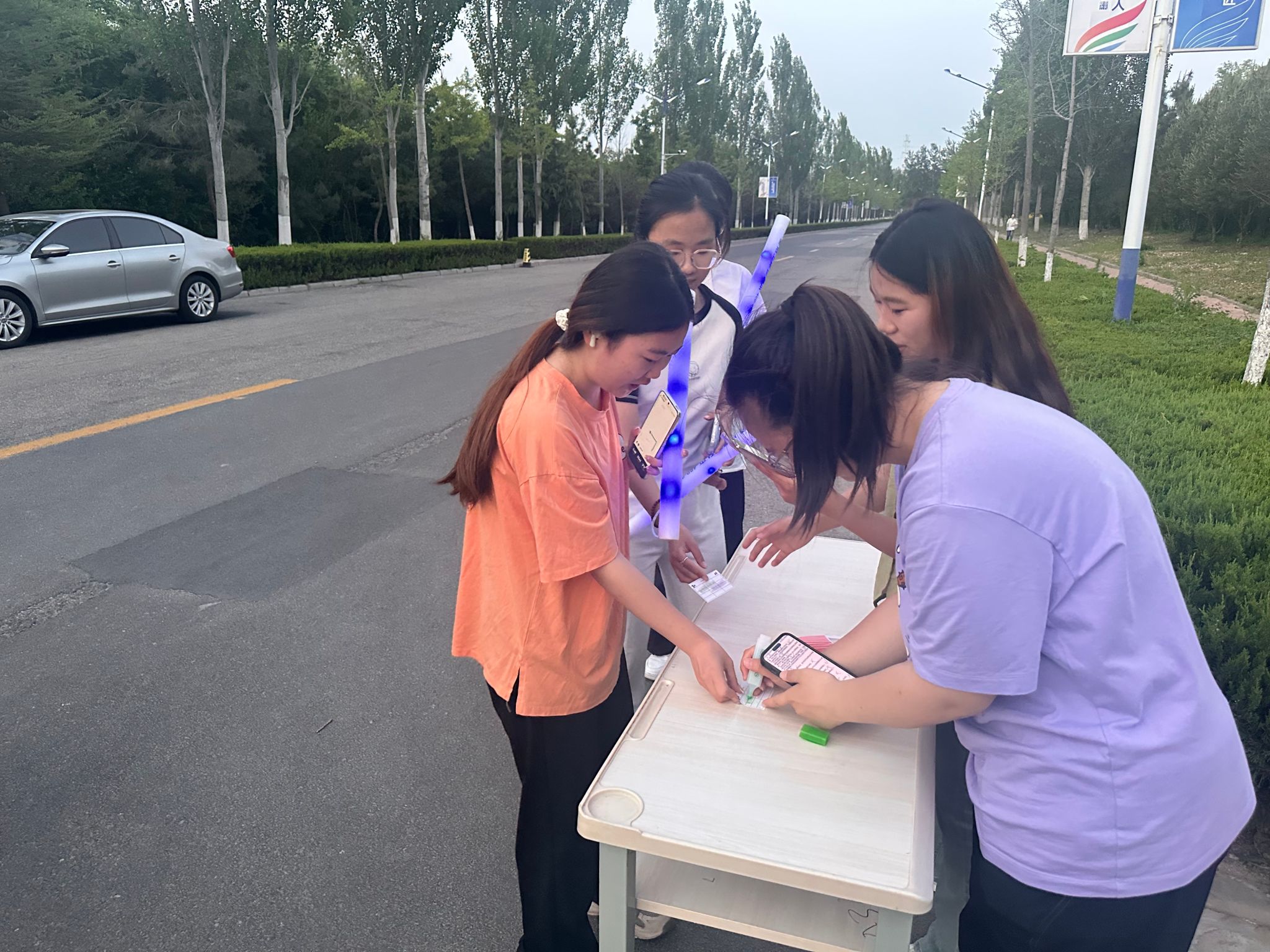 同學們通過小程序報名后,憑壓力測算值領取對應顏色熒光棒,在集合點完成集體熱身并學習正念呼吸法。隨著夜跑啟動,大家手持熒光裝備沿規劃路線出發,先后挑戰“心靈驛站小挑戰”“放飛紙飛機釋放心靈”“跟隨心靈的節奏”三大關卡——心理學知識搶答考驗腦力,書寫煩惱放飛紙飛機釋放情緒,即興舞蹈環節更是以動感節拍點燃全場活力。參與者需完成Keep里程記錄、游戲通關雙重任務,最終憑打卡界面與通關證明在終點登記,為這場兼具趣味性與心靈治愈的夜跑留下專屬印記。