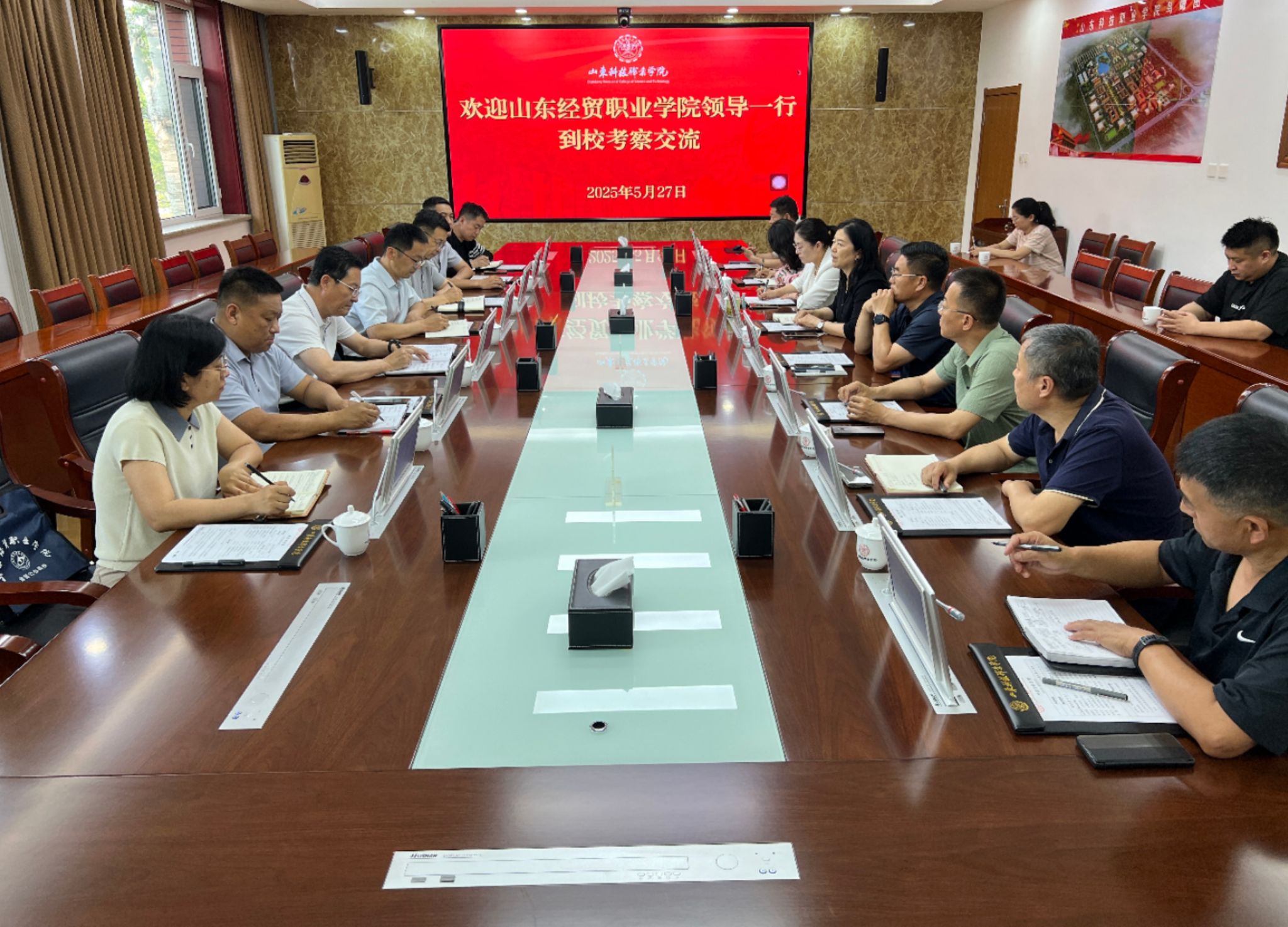 5月27日,山東經貿職業學院黨委委員、副院長馬起朋一行7人到訪我校。就學生食堂餐飲服務保障、基建建設、校園維修、綠化等方面進行了深入交流,學校黨委委員、副校長徐曉雁會見來訪客人并座談交流。財務處、基建處、后勤服務管理處相關人員參加座談。