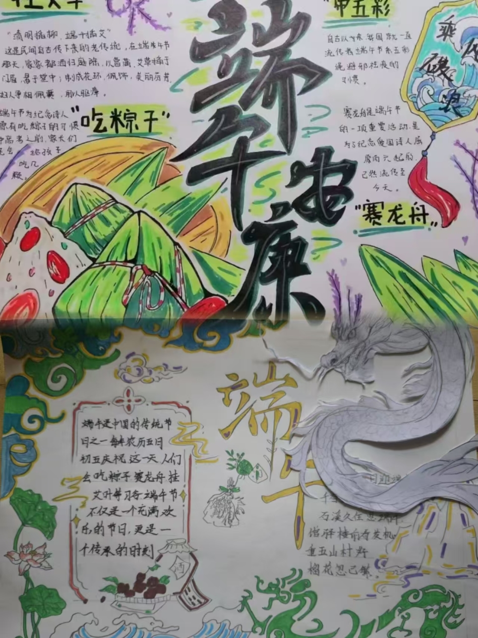 本次主題活動(dòng)分為手抄報(bào)和包粽子兩個(gè)子活動(dòng)。手抄報(bào)活動(dòng)鼓勵(lì)同學(xué)們圍繞端午節(jié)的起源傳說(shuō)、包粽子、賽龍舟、掛艾草、佩香囊等傳統(tǒng)習(xí)俗、歷史典故,以及新時(shí)代背景下端午文化的傳承與創(chuàng)新等內(nèi)容展開創(chuàng)作,既彰顯傳統(tǒng)文化的深厚底蘊(yùn),又展現(xiàn)出青年一代對(duì)傳統(tǒng)文化的獨(dú)到見解與創(chuàng)新表達(dá)。