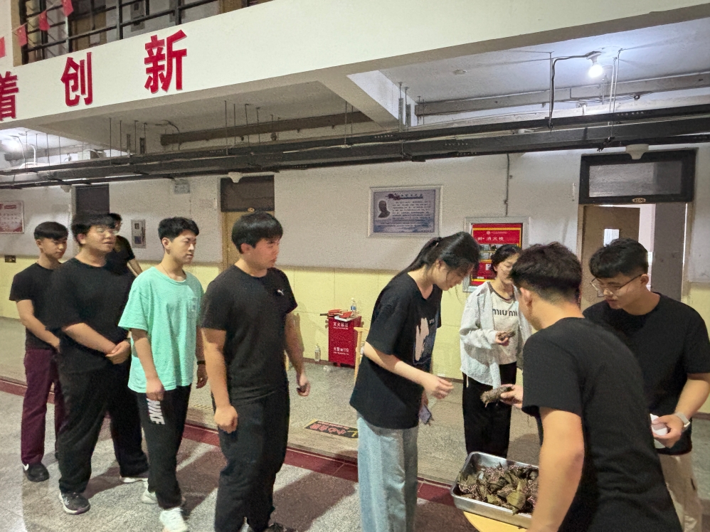 在包粽子比賽中,翠綠粽葉在同學(xué)們手中翻飛成錐,雪白糯米與赤紅蜜棗漸次填充,彩線纏繞間,一個(gè)個(gè)棱角分明的粽子躍然眼前,現(xiàn)場(chǎng)粽香與歡笑聲交織。小小的粽子,包裹的是甜蜜,傳遞的是溫暖,為了讓每位同學(xué)感悟端午氣息,同學(xué)們將包好的粽子在一站式社區(qū)進(jìn)行發(fā)放,讓每位同學(xué)進(jìn)行品嘗。