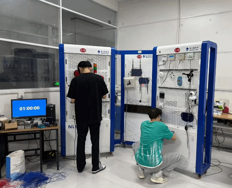 本次大賽按照世界職業院校技能大賽要求設計賽制,分為初賽和決賽兩個階段。初賽聚焦物聯網基礎理論、傳感器原理、嵌入式系統開發等核心知識,通過嚴謹的考核篩選,選拔出理論基礎扎實、技術能力突出的選手組成三支決賽隊伍。決賽環節由參賽隊伍自選場景任務,要求在60分鐘內協同完成物聯網感知層設備調試、網絡層協議優化、應用層功能開發等全流程技術挑戰。比賽全程啟用專業監控系統,從技能點講解、技術操作規范度、方案創新性、團隊協作效率等多維度進行評分,全方位檢驗團隊選手的綜合職業素養。