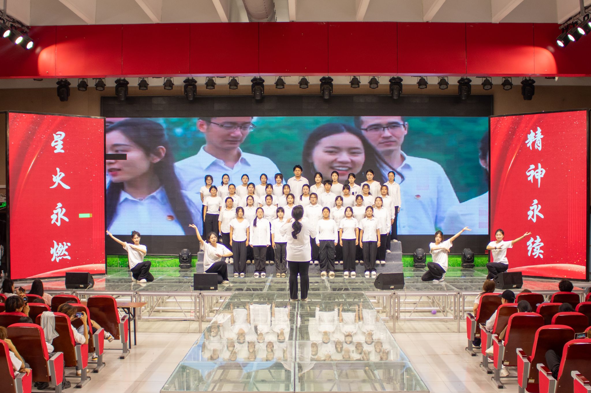舞臺上下,紅歌旋律與青春激情碰撞,比賽現場氣氛熱烈,各參賽隊伍以昂揚的精神風貌傾情獻唱。參賽隊伍從聲部和諧,到手勢舞、朗誦、特色服裝等方面進行創意編排,以合唱與情景劇融合的創新形式,賦予經典曲目新時代的活力,生動演繹“接力擔當”的信仰傳承,引得全場掌聲雷動。
