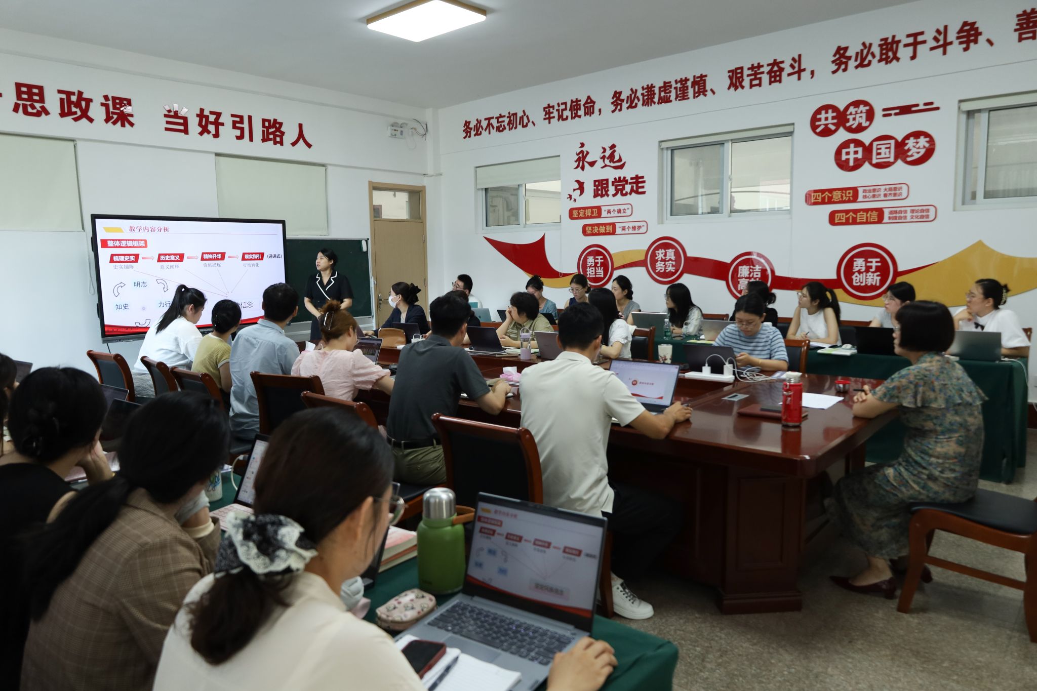 為進一步推動思政課建設(shè)內(nèi)涵式發(fā)展,確保新學(xué)期教學(xué)工作規(guī)范有序運行,開啟鑄魂育人的教育新篇章,馬克思主義學(xué)院于8月22日在博學(xué)樓A106開展2025-2026學(xué)年第一學(xué)期“開學(xué)第一課”集體備課展示交流活動,全體教師參加活動。