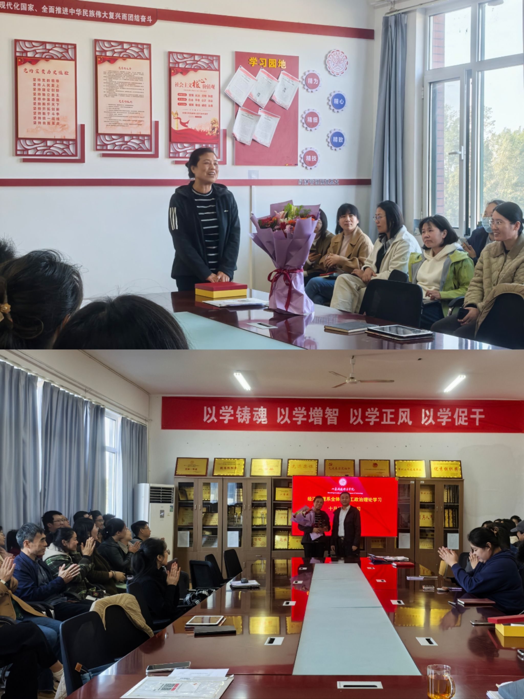 10月29日,恰逢重陽節,經濟管理系分工會在篤志樓404會議室為退休教師丁愛美舉行榮退儀式。系部全體教師參加儀式并合影留念。