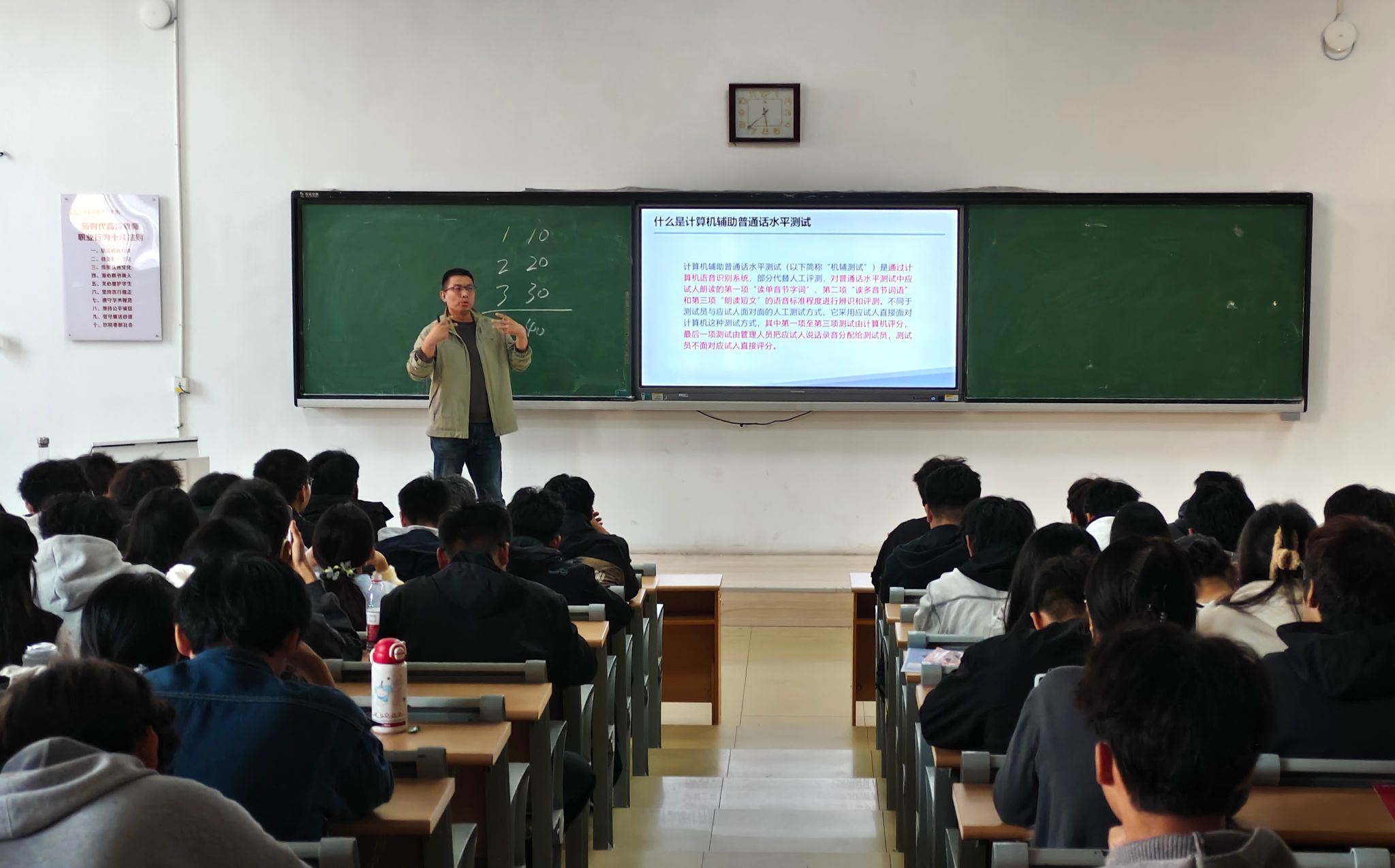 11月5日下午,為助力學生提升普通話水平、明晰考試流程,機械工程系在博學樓C102教室開展普通話考試培訓活動。本次活動由基礎部勞鴻鵬老師擔任主講,機械工程系兩百多名學生參與學習培訓,通過理論與實踐相結合的模式系統指導參訓同學提升普通話發音規范及語言表達能力。