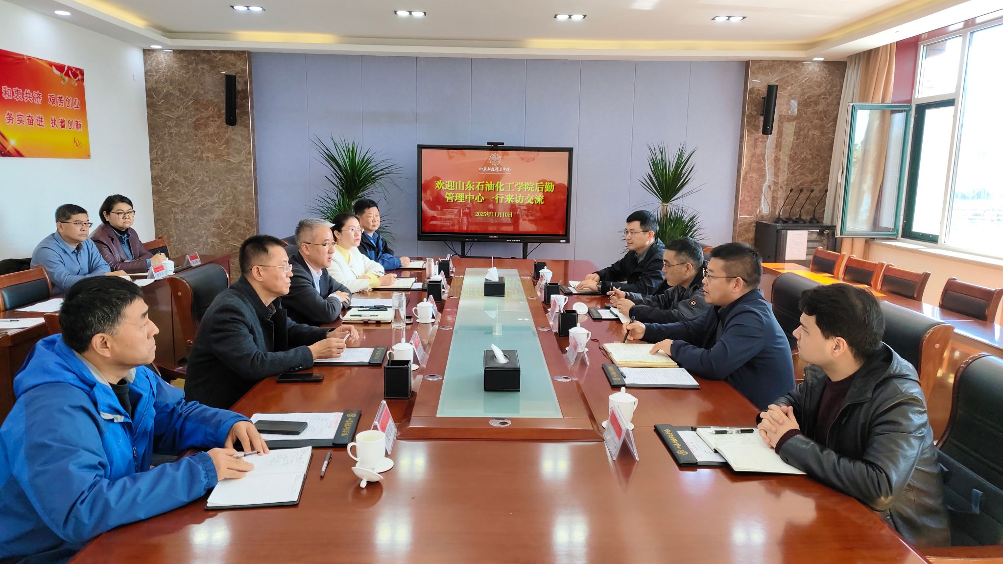 11月10日上午,山東石油化工學(xué)院后勤管理中心主任祝永勝率隊一行5人到訪我校,學(xué)校黨委副書記秦建坤會見來賓并進行座談交流,后勤服務(wù)管理處主要負(fù)責(zé)同志參加。